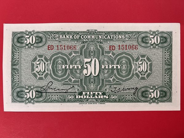 ธนบัตรจีน อี๋ซื่อหยวน 50 ดอลล่าร์