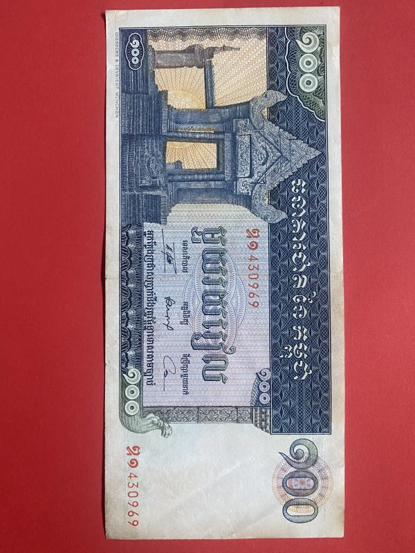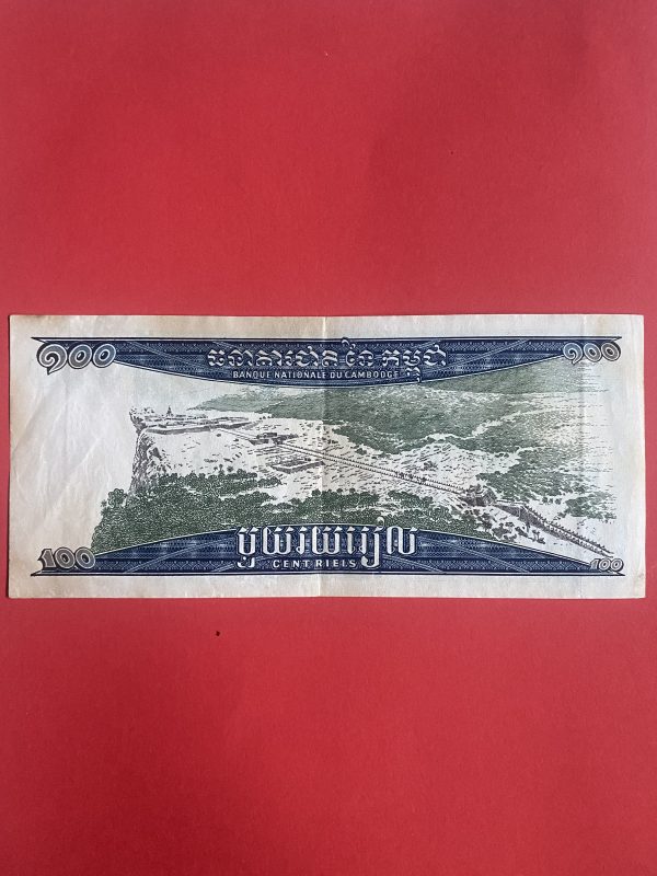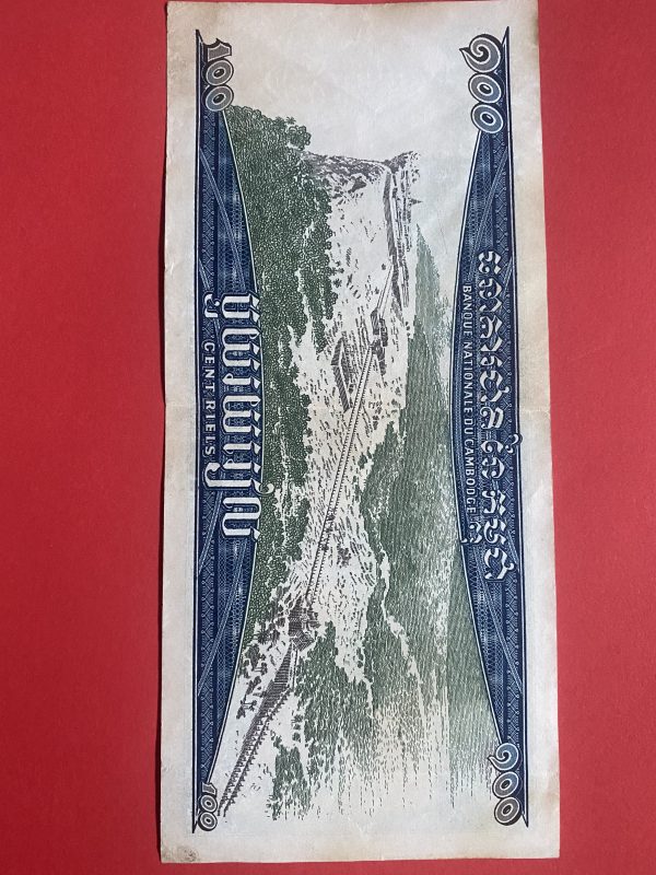 ธนบัตรต่างชาติ ประเทศ GAMBODGE(กัมพูชา) 100 RIELS (เรียล) ปราสาทเขาพระวิหาร ปี 1963 สภาพสวย สำหรับสะสม