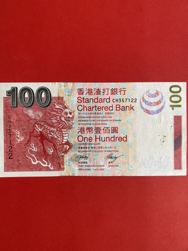ธนบัตรต่างชาติ ประเทศ HONGKONG 100 DOLLARS ผลิต 1 กรกฎาคม 2003 สภาพสวย