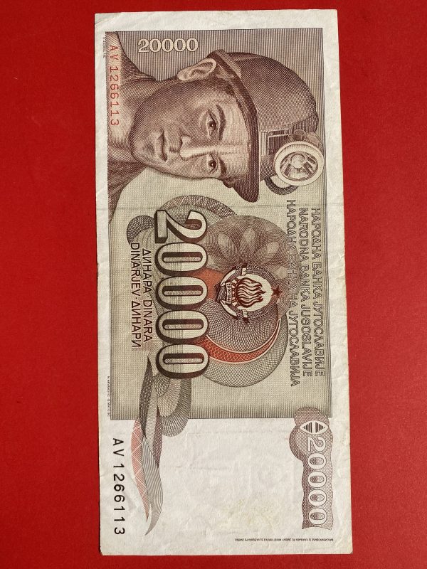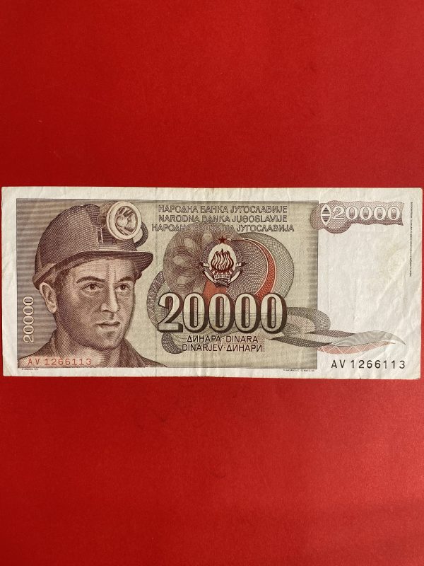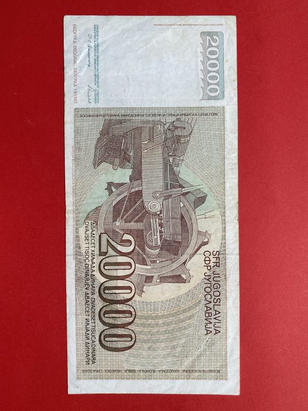 ธนบัตรต่างชาติ ประเทศ JUGOSLAVIJA 20,000 DINARA ดิน่าร์ ผลิต ประมาณปี 1987 ( พ.ศ. 2530 )
