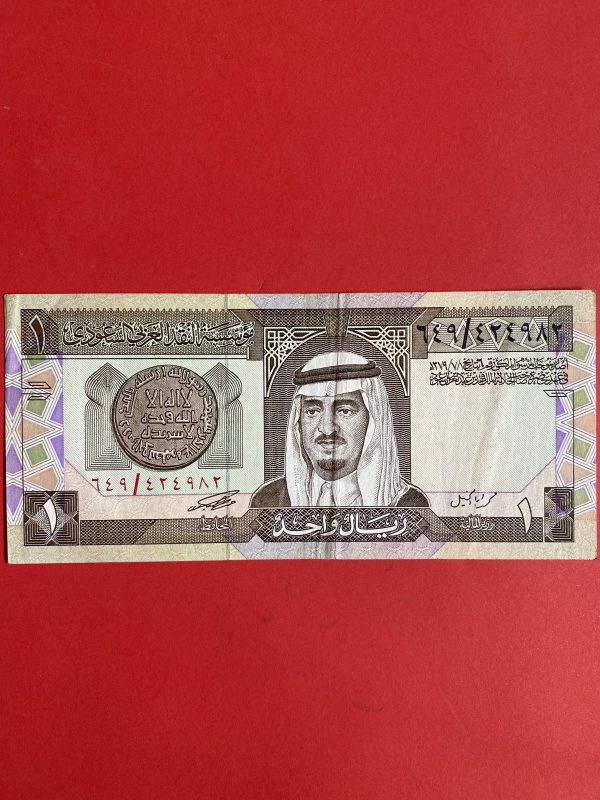 ธนบัตรต่างชาติ ประเทศ SAUDI ARABIAN ONE RIYAL ผลิต ปี 1984 สภาพสวยงาม