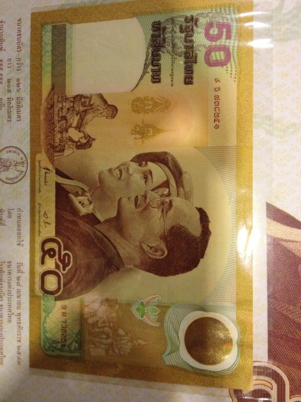 ธนบัตรที่ระลึกชนิดราคา 50 บาท เนื่องในอภิลักขิตสมัยมหามงคลวันราชาภิเษกสมรส 28 เมษายน 2543