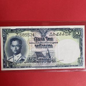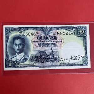 ธนบัตรแบบ 9 1บาท รุ่นที่ 6 ประกาศใช้ 27 สิงหาคม 2501 ลายเซ็น สุนทร หงส์ลดารมภ์ - ป๋วย อึ๊งภากรณ์ พิมพ์ที่ บริษัท โทมัส เดอ ลา