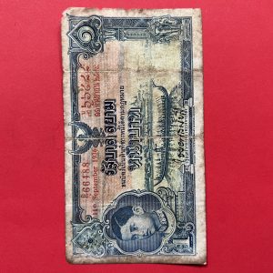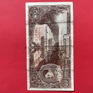 ธนบัตรแบบ 9 1บาท รุ่นที่ 4 ประกาศใช้ 10 มกราคม 2498 ลายเซ็น ภ บริภัณฑ์ยุทธกิจ - เกษม ศรีพยัคฆ์ พิมพ์ที่ บริษัท โทมัส เดอ ลา