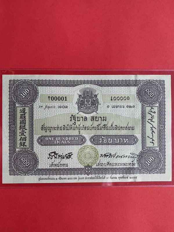 ธนบัตรที่ระลึก 100 บาท ครบรอบ 100 ปี ธนบัตรไทย ลายเซ็น สมคิด จาตุศรีพิทักษ์ – ม.ร.ว. ปรีดียาธร เทวกุล ออกใช้ 2 กันยายน 2545