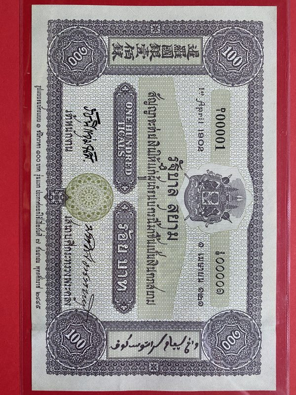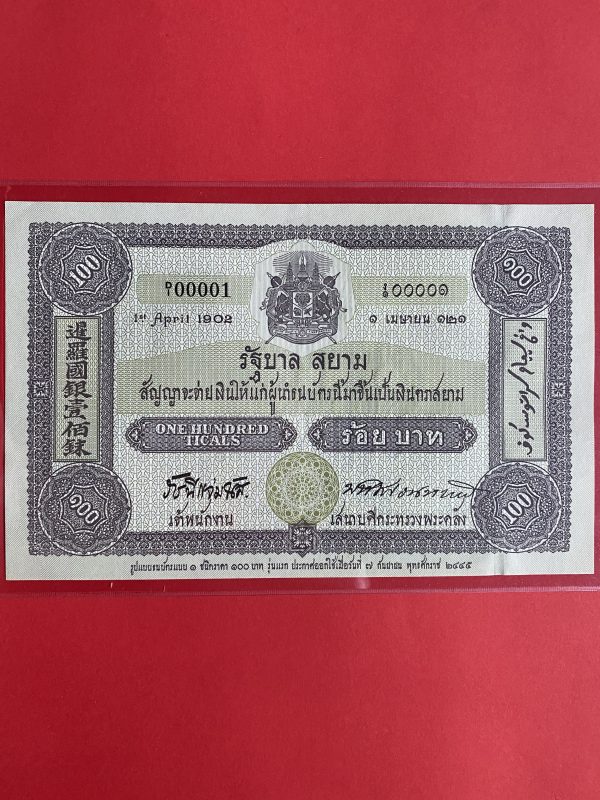 ธนบัตรที่ระลึก 100 บาท ครบรอบ 100 ปี ธนบัตรไทย ลายเซ็น สมคิด จาตุศรีพิทักษ์ – ม.ร.ว. ปรีดียาธร เทวกุล ออกใช้ 2 กันยายน 2545