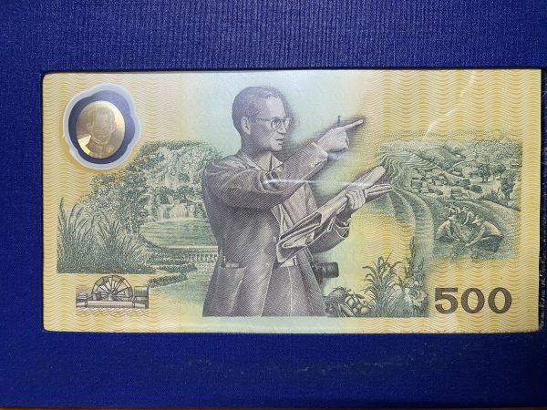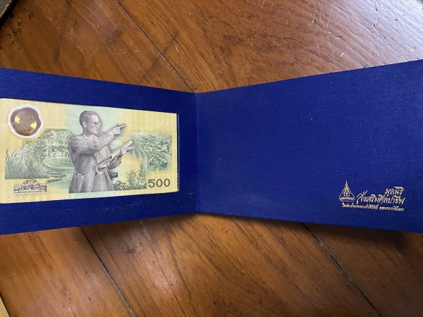ธนบัตรที่ระลึก500บ.แบบพิเศษ พระบาทสมเด็จพระเจ้าอยู่หัวรัชกาลที่ 9 ฉลองสิริราชสมบัติครบ 50 ปี สวยสมบูรณืพร้อมปกผ้าไหม