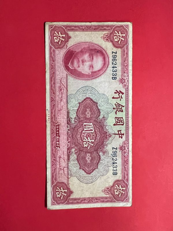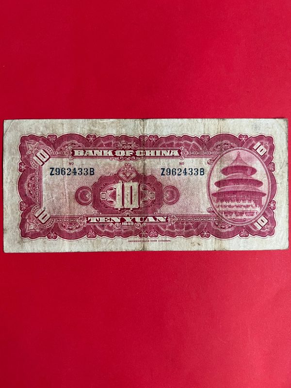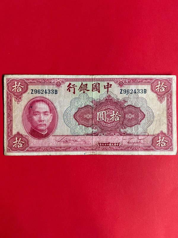 ธนบัตรเก่าประเทศจีน ค.ศ. 1940 มูลค่า 10 YUAN อายุประมาณ 80 กว่าปี สภาพใช้