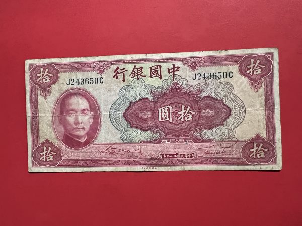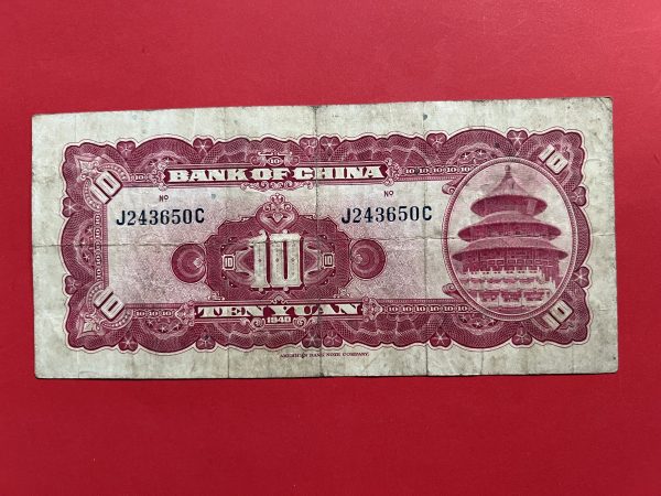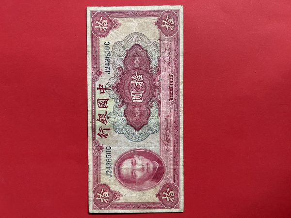 ธนบัตรเก่าประเทศจีน ค.ศ. 1940 มูลค่า 10 YUAN อายุประมาณ 80 กว่าปี สภาพใช้