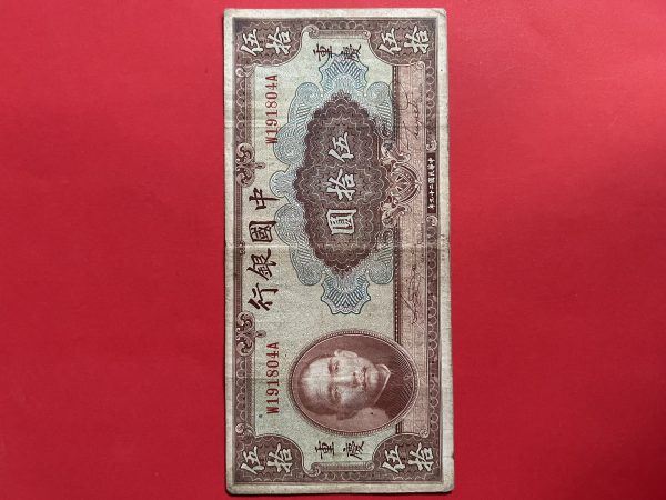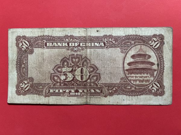 ธนบัตรเก่าประเทศจีน ค.ศ. 1940 มูลค่า 50 YUAN อายุประมาณ 80 กว่าปี สภาพใช้