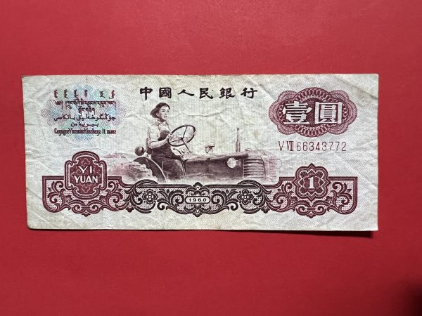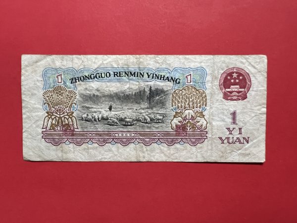 ธนบัตรเก่าประเทศจีน ค.ศ. 1960 มูลค่า 1 YUAN อายุประมาณ 60 กว่าปี นับเป็นธนบัตรรุ่นที่ 2 ที่สามารถใช้ได้ทุกเขตทั่วประเทศหลังสงครามกลางเมือง หายากมาก