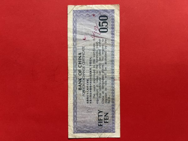ธนบัตรเก่าประเทศจีน ( BANK OF CHAINA ) มูลค่า FIFTY FEN นับเป็นธนบัตรรุ่นที่ 2 ที่สามารถใช้ได้ทุกเขตทั่วประเทศหลังสงครามกลางเมือง