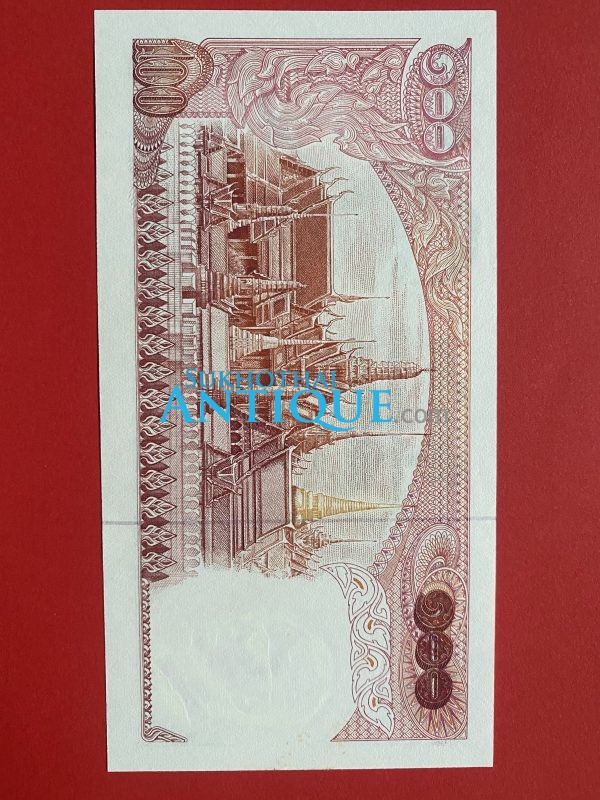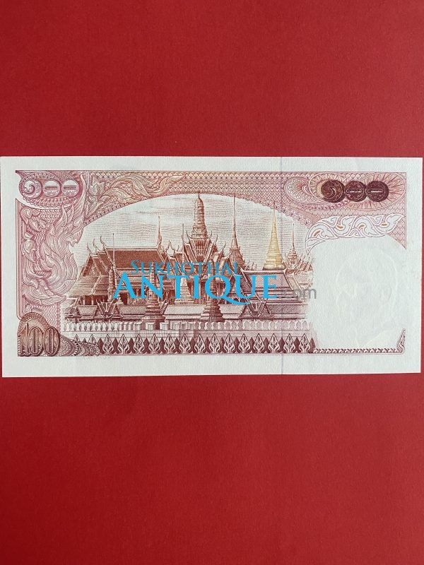ธนบัตรแบบ 11 100 บาท รุ่นที่ 2 ประกาศใช้ 26 มกราคม 2516 ลายเซ็น บุญชู โรจนเสถียร – เสนาะ อูนากูล พิมพ์โรงพิมพ์ธนบัตรของไทย