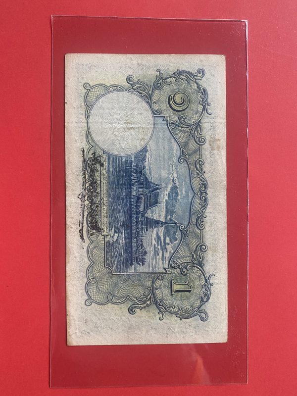 ธนบัตรแบบ 3 1บาท รุ่นที่ 1 (รัชกาลที่ 7) ประกาศใช้ 8 สิงหาคม 2479 ลายเซ็น พระยามานวราชเสวี พิมพ์ที่ บริษัท โทมัส เดอ ลา รู