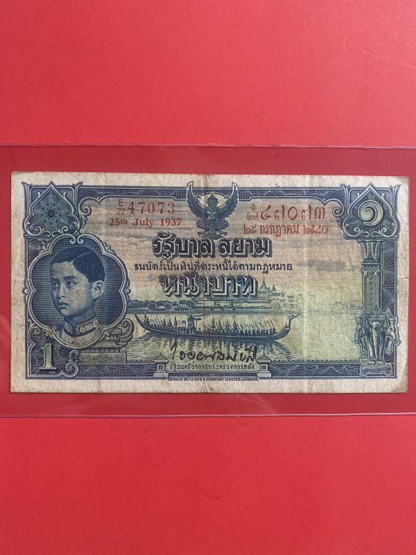 ธนบัตรแบบ 3 1บาท รุ่นที่ 2 (รัชกาลที่ 8) ประกาศใช้ 28 กันยายน 2479 ลายเซ็น พระยาไชยศสมบัตร พิมพ์ที่ บริษัท โทมัส เดอ ลา รู