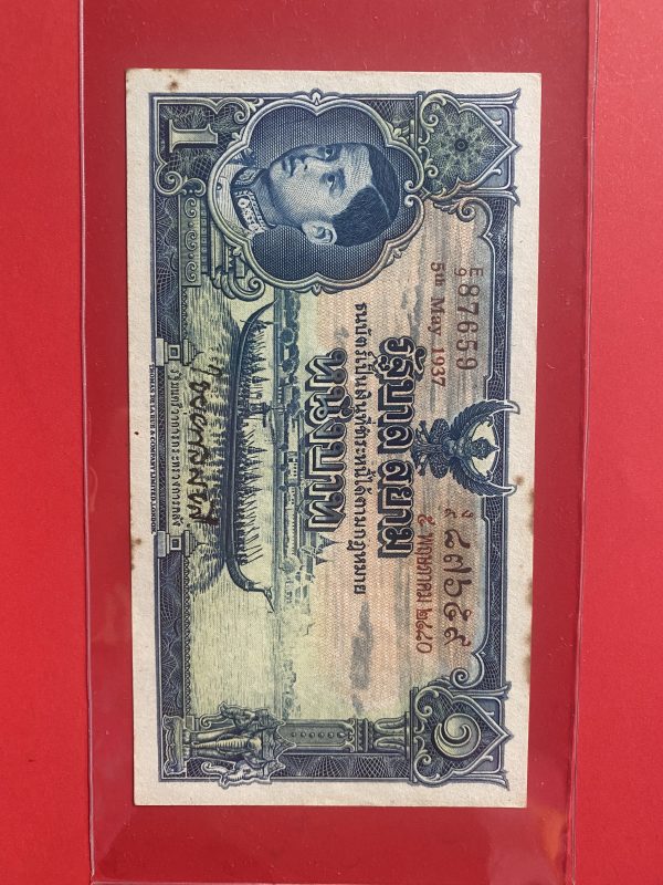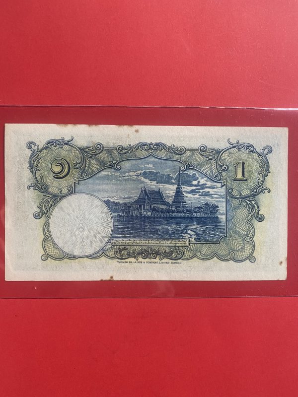 ธนบัตรแบบ 3 1บาท รุ่นที่ 2 รัชกาลที่ 8 ประกาศใช้ 28 กันยายน 2479 ลายเซ็น พระยาไชยศสมบัตร พิมพ์ที่ บริษัท โทมัส เดอ ลา รู