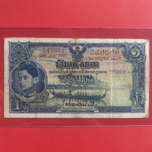 ธนบัตรแบบ 3 1บาท รุ่นที่ 2 รัชกาลที่ 8 ประกาศใช้ 28 กันยายน 2479 ลายเซ็น พระยาไชยศสมบัตร พิมพ์ที่ บริษัท โทมัส เดอ ลา รู