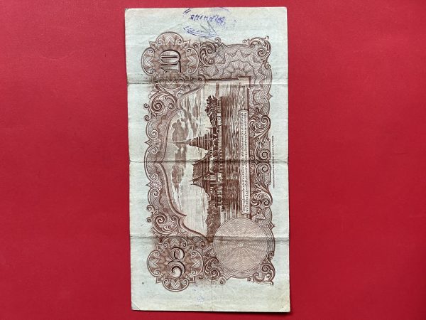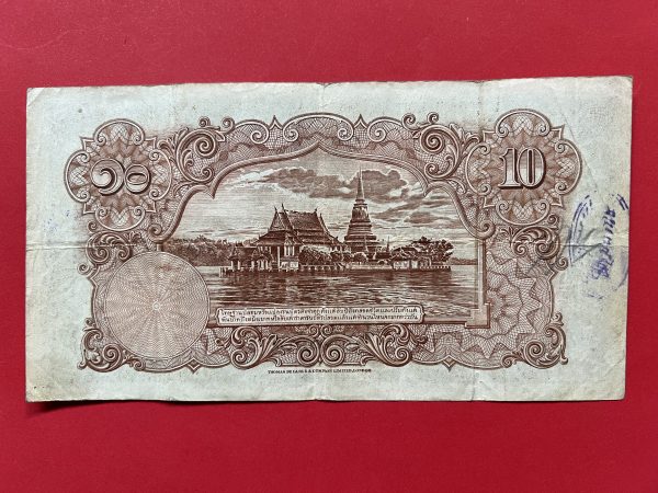 ธนบัตรแบบ 3 10บาท รุ่นที่ 2 รัชกาลที่ 8 ประกาศใช้ 13 สิงหาคม 2479 ลายเซ็น พระยาไชยศสมบัตร พิมพ์ที่ บริษัท โทมัส เดอ ลา รู