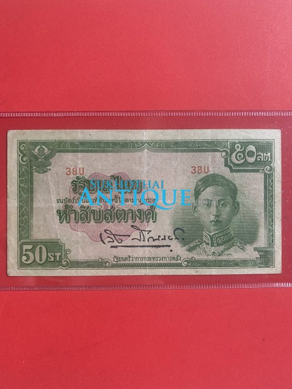 ธนบัตรแบบพิเศษ 50 ส.ต.รุ่นที่ 4 ร.8 (ไทยถีบ) ประกาศใช้ 30 มี.ค.2489 ลายเเซ็น ศรีวิสารวาจา พิมพ์ที่ โรงพิมพ์ญี่ปุ่นที่ เกาะชวา อินโดฯ