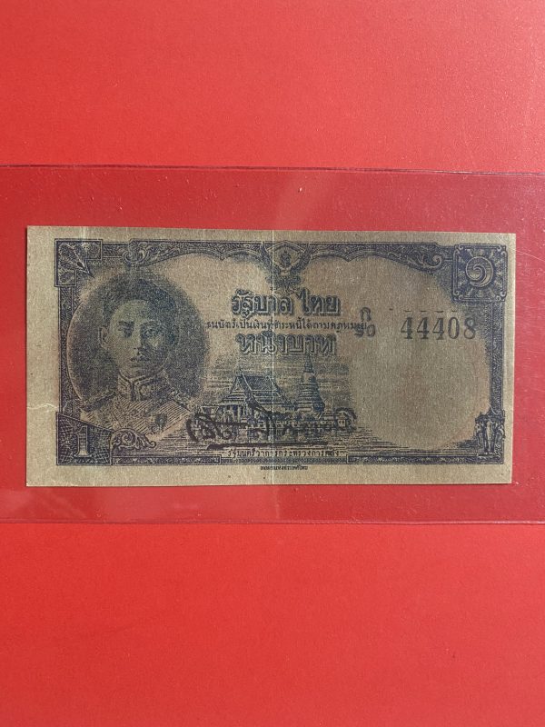ธนบัตรแบบ 3 1บาท รุ่นที่ 2 รัชกาลที่ 8 ประกาศใช้ 28 กันยายน 2479 ลายเซ็น พระยาไชยศสมบัตร พิมพ์ที่ บริษัท โทมัส เดอ ลา รู