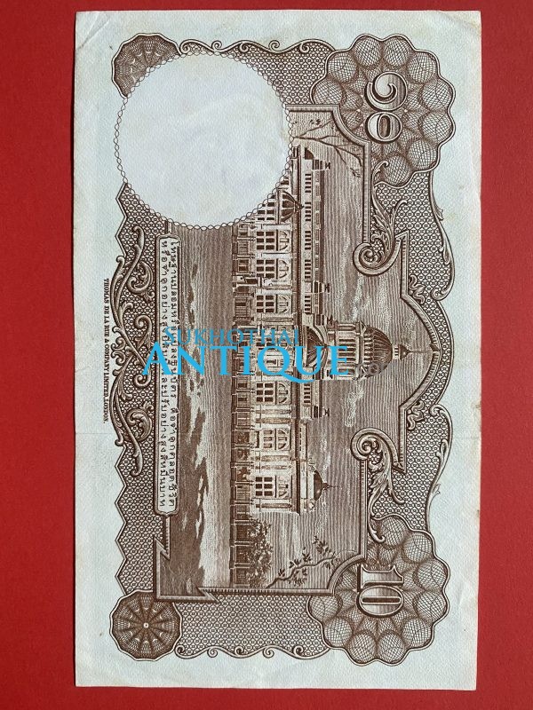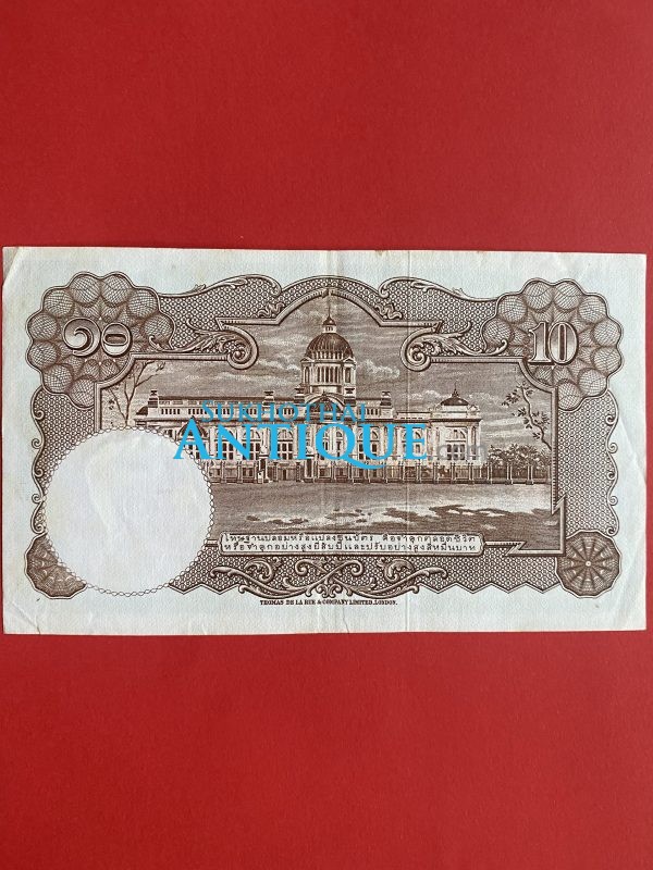 ธนบัตรแบบ 3 10บาท รุ่นที่ 2 รัชกาลที่ 8 ประกาศใช้ 13 สิงหาคม 2479 ลายเซ็น พระยาไชยศสมบัตร พิมพ์ที่ บริษัท โทมัส เดอ ลา รู