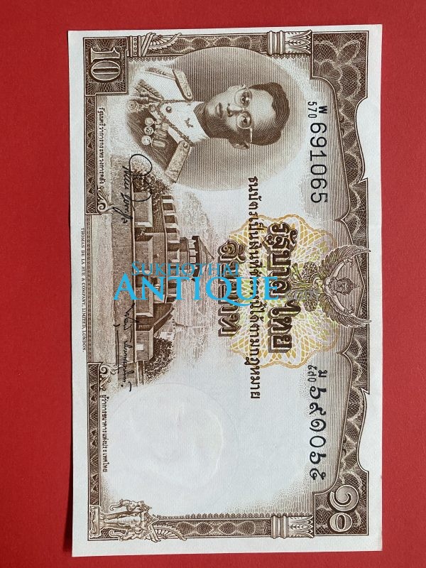 ธนบัตรแบบ 4 10บาท รุ่นที่ 2 รัชกาลที่ 8 ใช้ 8 มีนาคม 2482 ลายเซ็น หลวงประดิษฐ์มนูธรรม พิมพ์ที่ บริษัท โทมัส เดอ ลารู
