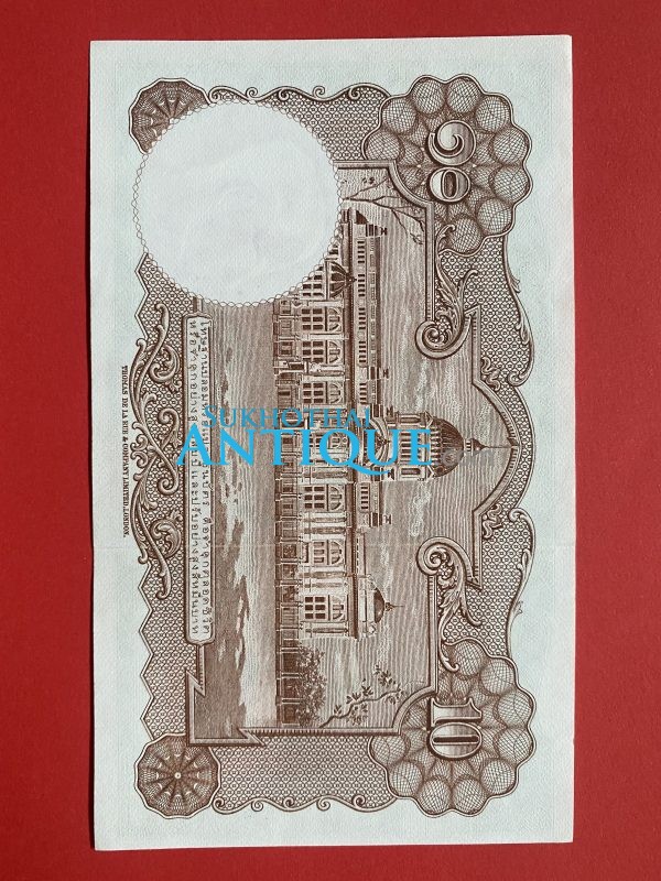 ธนบัตรแบบ 9 10บาท รุ่นที่ 6 ประกาศใช้ 27 สิงหาคม 2501 ลายเซ็น สมหมาย ฮุนตระกูล – พิสุทธิ์ นิมมานเหมินท์ พิมพ์ที่ บริษัท โทมัส
