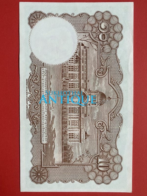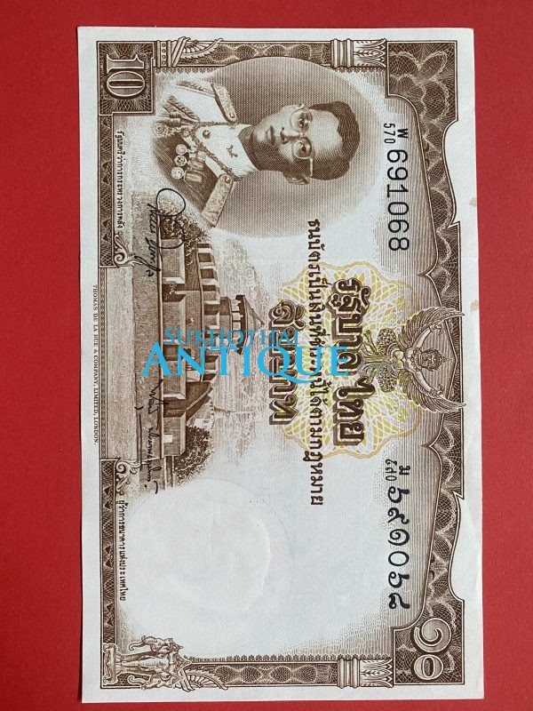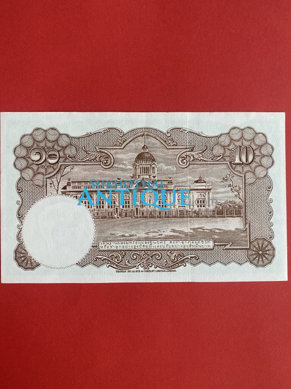 ธนบัตรแบบ 3 10บาท รุ่นที่ 2 รัชกาลที่ 8 ประกาศใช้ 13 สิงหาคม 2479 ลายเซ็น พระยาไชยศสมบัตร พิมพ์ที่ บริษัท โทมัส เดอ ลา รู
