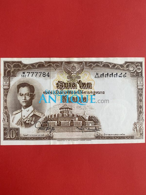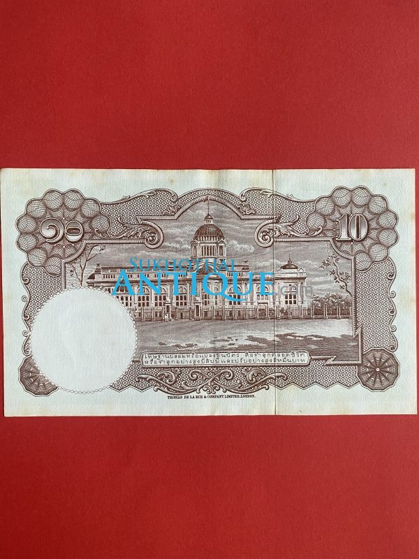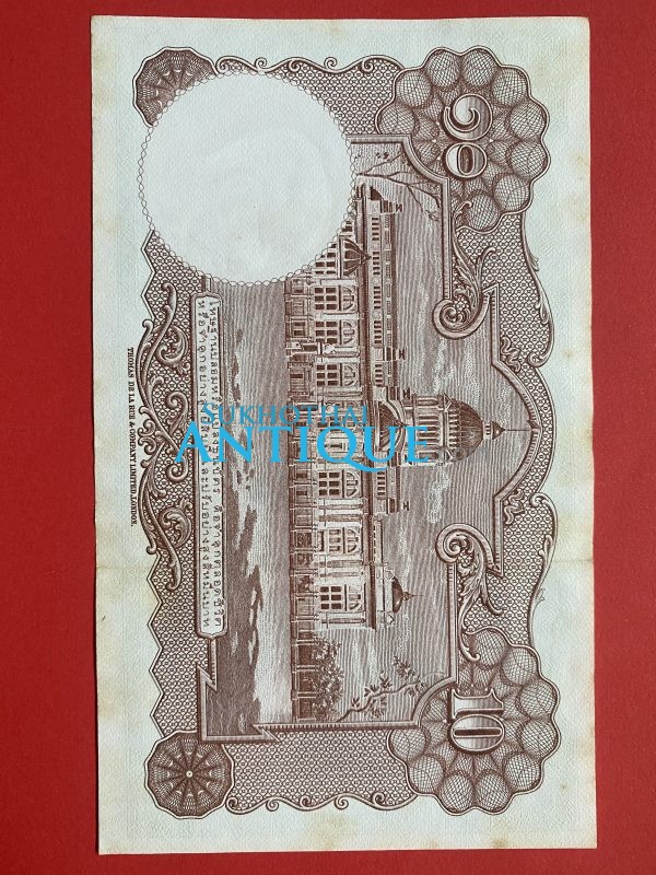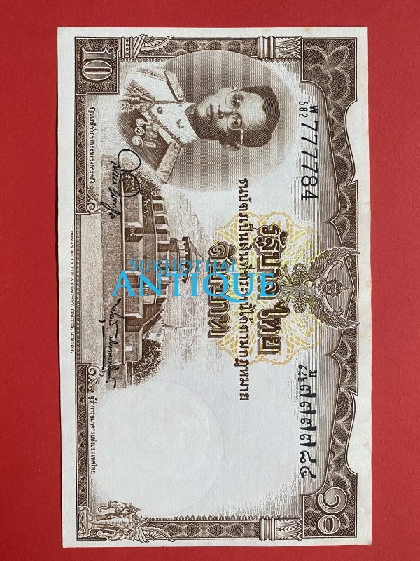 ธนบัตรแบบ 4 10บาท รุ่นที่ 2 รัชกาลที่ 8 ใช้ 8 มีนาคม 2482 ลายเซ็น หลวงประดิษฐ์มนูธรรม พิมพ์ที่ บริษัท โทมัส เดอ ลารู