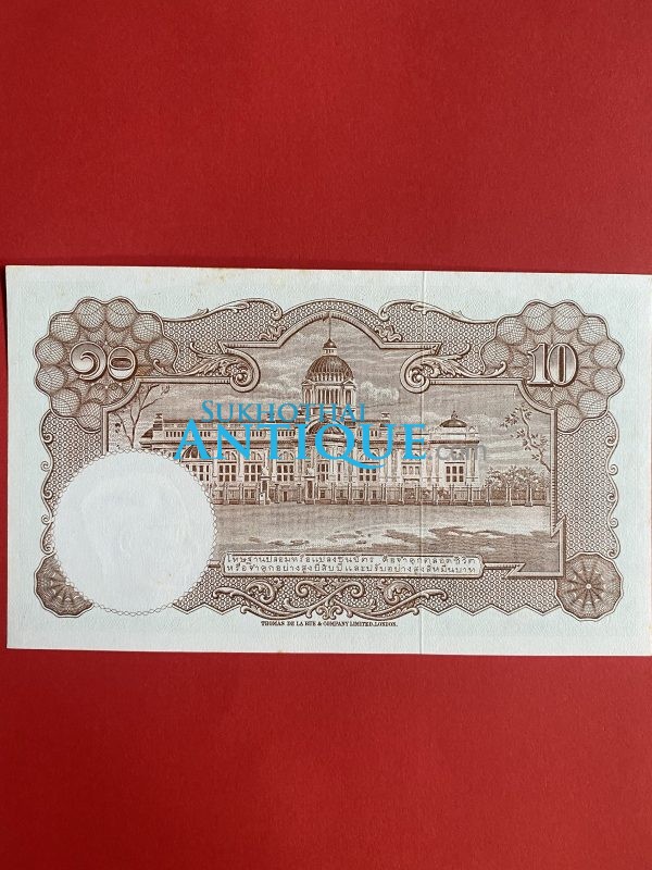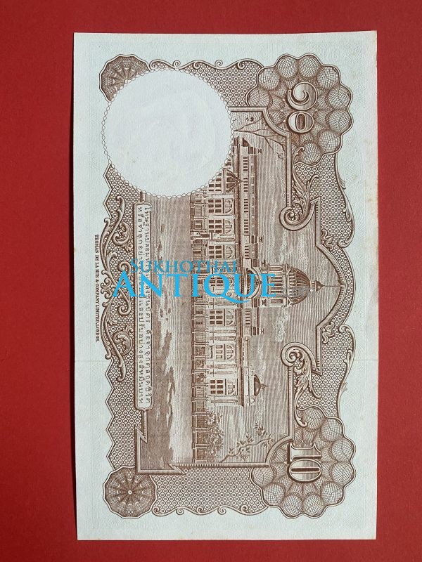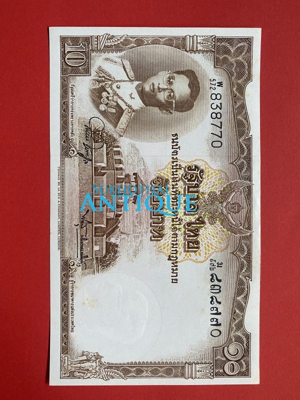 ธนบัตรแบบ 9 10บาท รุ่นที่ 6 ประกาศใช้ 27 สิงหาคม 2501 ลายเซ็น สมหมาย ฮุนตระกูล – พิสุทธิ์ นิมมานเหมินท์ พิมพ์ที่ บริษัท โทมัส