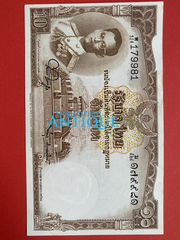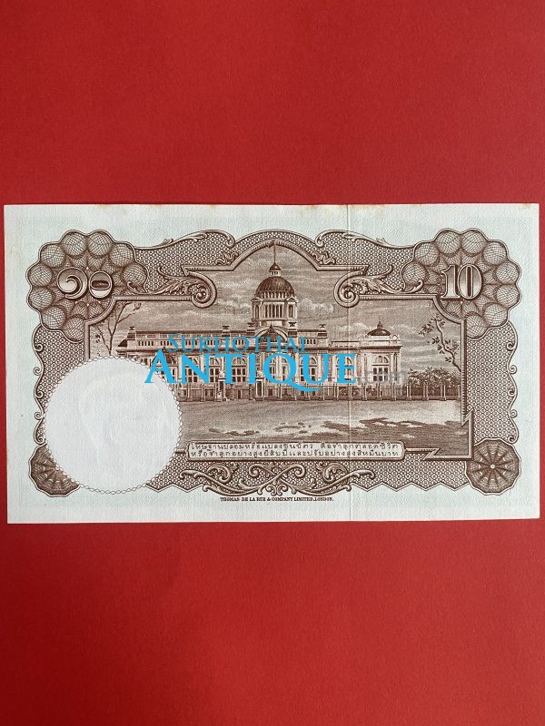 ธนบัตรแบบ 3 10บาท รุ่นที่ 2 รัชกาลที่ 8 ประกาศใช้ 13 สิงหาคม 2479 ลายเซ็น พระยาไชยศสมบัตร พิมพ์ที่ บริษัท โทมัส เดอ ลา รู