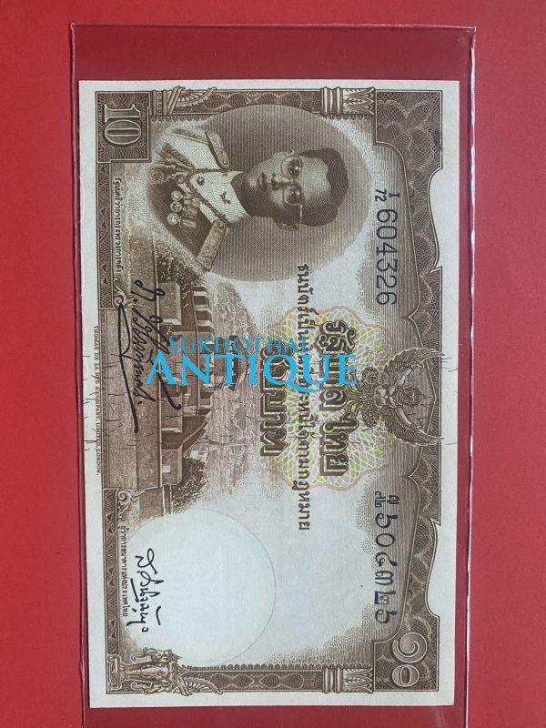 ธนบัตรแบบ 9 10 บาท รุ่นที่ 3 ประกาศใช้ 21 พฤศจิกายน 2496 ลายเซ็น ภ.บริภัณฑ์ยุทธกิจ – ส.วินิจฉัยกุล พิมพ์ บริษัท โทมัส เดอ ลา รู