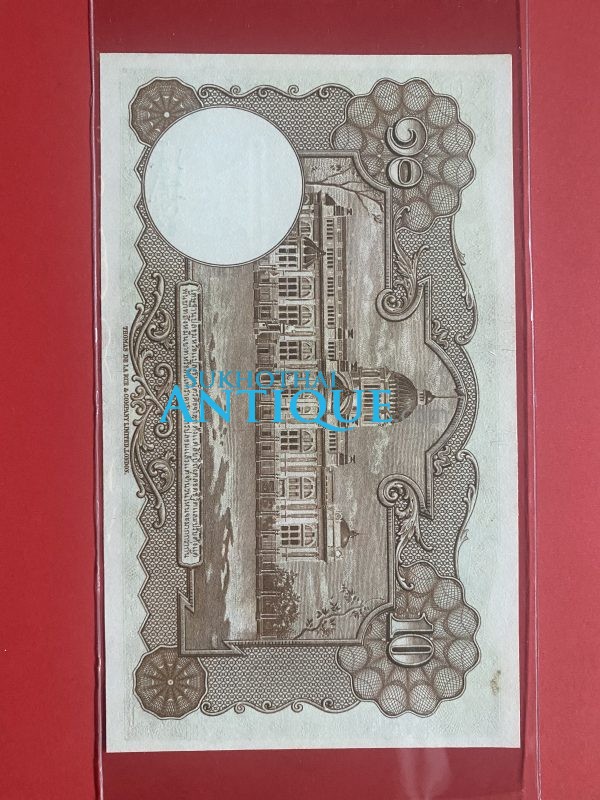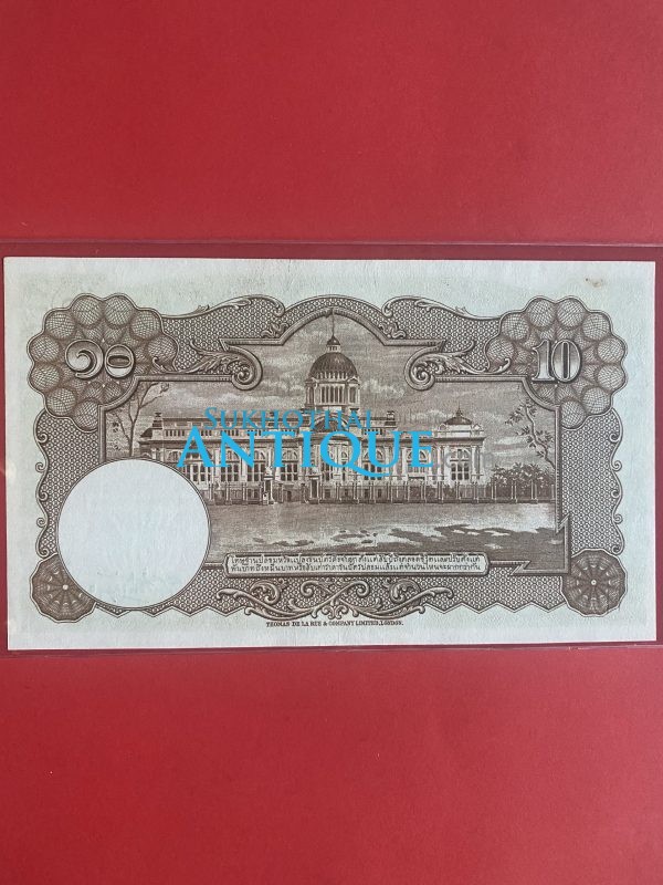ธนบัตรแบบ 4 10บาท รุ่นที่ 2 รัชกาลที่ 8 ใช้ 8 มีนาคม 2482 ลายเซ็น หลวงประดิษฐ์มนูธรรม พิมพ์ที่ บริษัท โทมัส เดอ ลารู