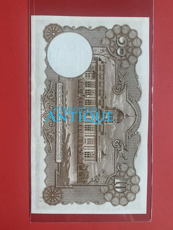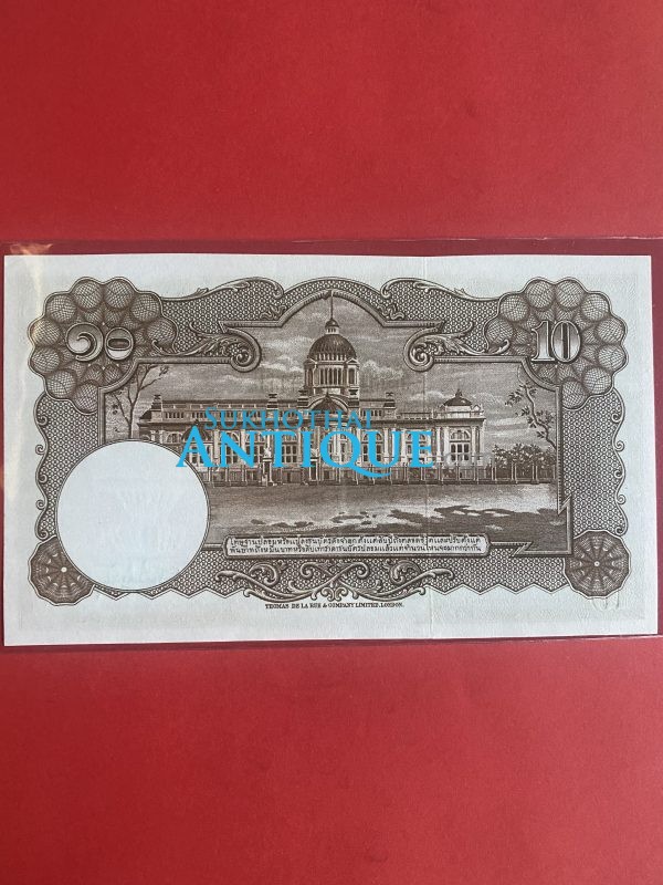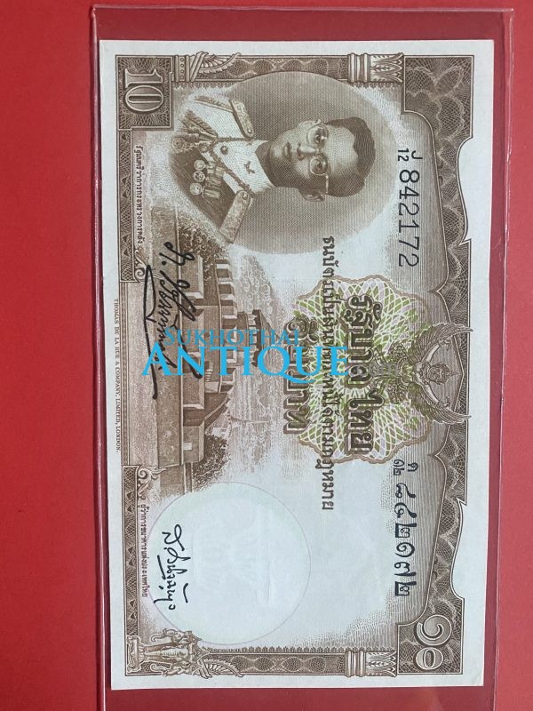 ธนบัตรแบบ 4 10บาท รุ่นที่ 2 รัชกาลที่ 8 ใช้ 8 มีนาคม 2482 ลายเซ็น หลวงประดิษฐ์มนูธรรม พิมพ์ที่ บริษัท โทมัส เดอ ลารู