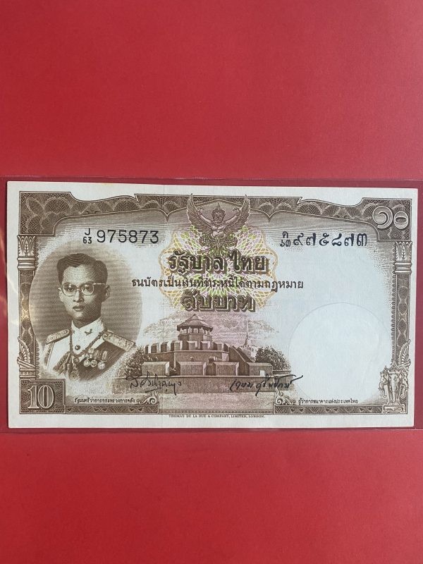 ธนบัตรแบบ 3 10บาท รุ่นที่ 2 รัชกาลที่ 8 ประกาศใช้ 13 สิงหาคม 2479 ลายเซ็น พระยาไชยศสมบัตร พิมพ์ที่ บริษัท โทมัส เดอ ลา รู