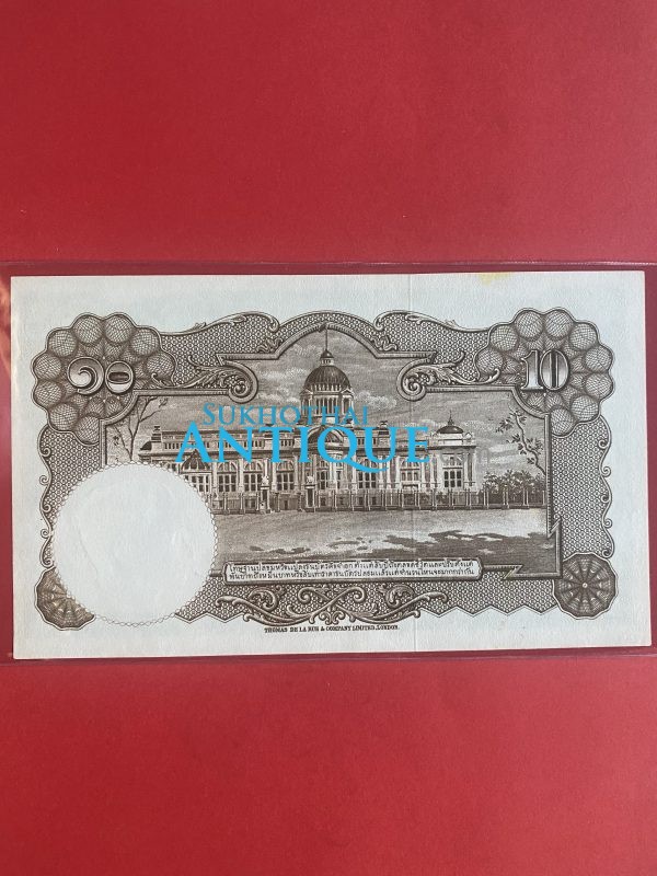ธนบัตรแบบ 4 10บาท รุ่นที่ 2 รัชกาลที่ 8 ใช้ 8 มีนาคม 2482 ลายเซ็น หลวงประดิษฐ์มนูธรรม พิมพ์ที่ บริษัท โทมัส เดอ ลารู