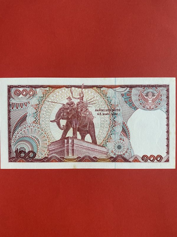 ธนบัตรแบบ 9 100 บาท รุ่นที่ 5 ประกาศใช้ 27 สิงหาคม 2501 ลายเซ็น ส. วินิจฉัยกุล - ป๋วย อึ๊งภากรณ์ พิมพ์ บริษัท โทมัส เดอ ลา ลู