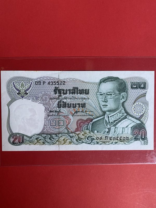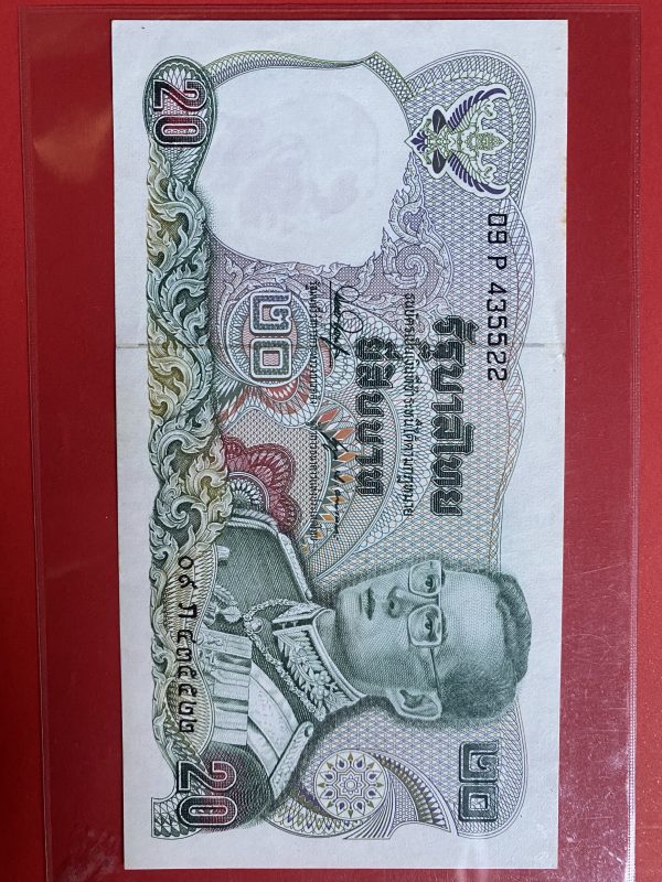 ธนบัตรแบบ12 20 บาท รุ่นที่ 1 ต่างจากรุ่นที่ 2 คือมี 6 หลัก ลายเซ็น สมหมาย ฮุ่นตระกูล – นุกูล ประจวบเหมาะ โรงพิมพ์ธนบัตรของไทย