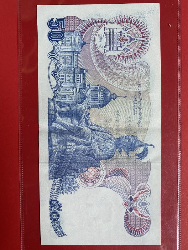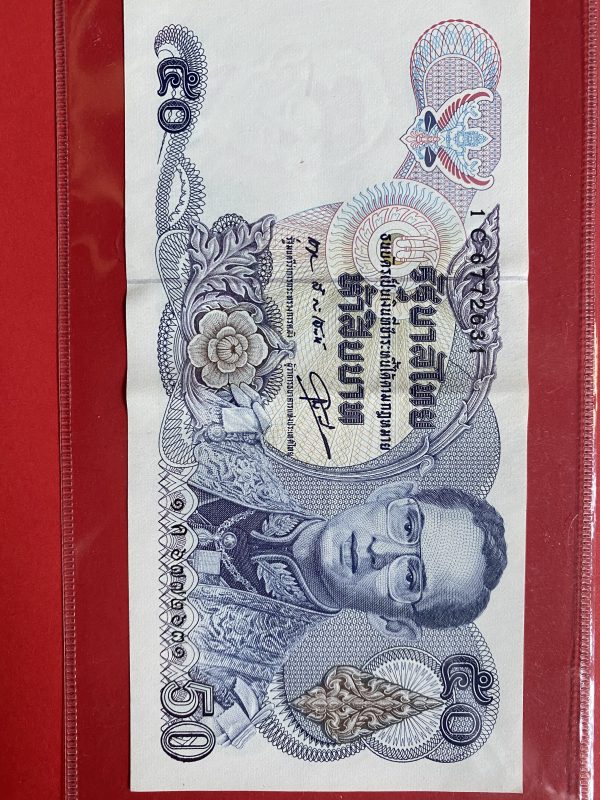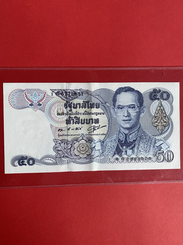 ธนบัตรแบ13 50บาท รุ่นที่ 2 ประกาศใช้ 14 เมย 2530 ลายเซ็น สุธี สิงห์เสน่ห์ – กำจร สถิรกุล พิมพ์โรงพิมพ์ธนบัตรของไทย