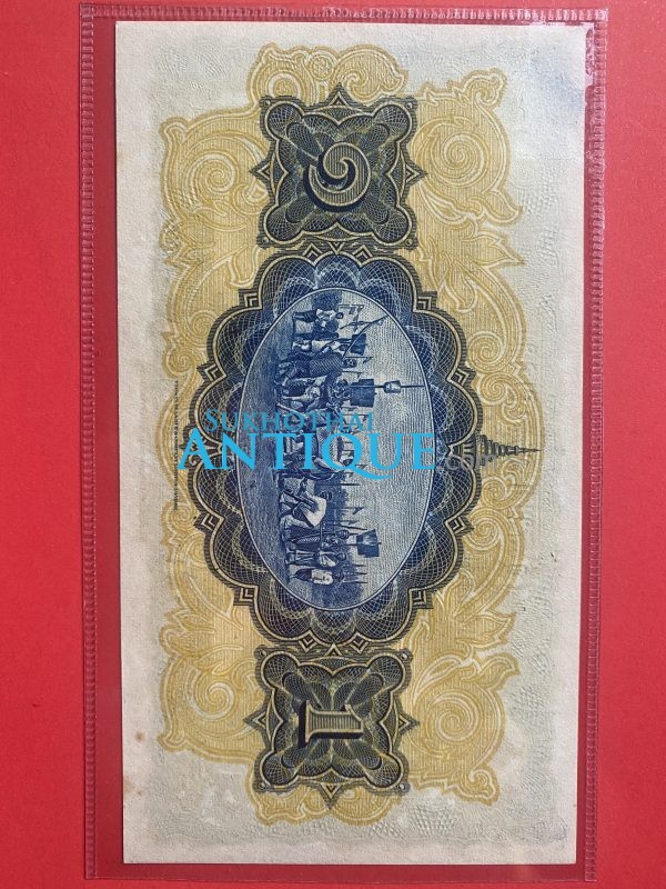 ธนบัตรแบบ 4 5บาท รุ่นที่ 1 รัชกาลที่ 8 ใช้ 14 เมษายน 2482 ลายเซ็น หลวงประดิษฐ์มนูธรรม พิมพ์ที่ บริษัท โทมัส เดอ ลารู