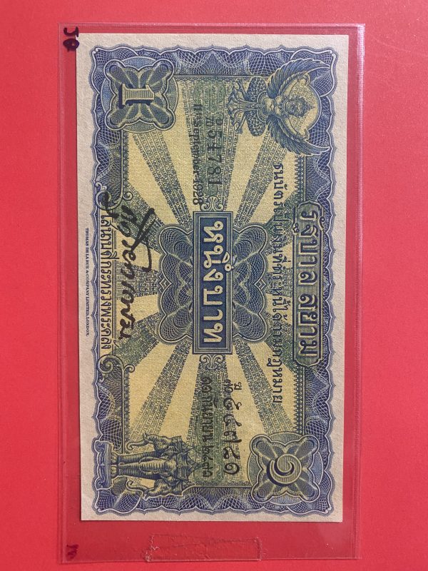 ธนบัตร แบบ 2 ไถนา1บ. รุ่นที่ 2 ร.6 ประกาศใช้ 19 ก.พ. 2471 ลายเซ็น ศุภโยคเกษม พิมพ์ที่ บริษัท โทมัส เดอ ลา รู แอนด์ คัมปานี