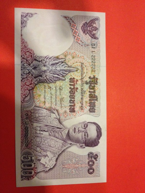 ธนบัตร แบบ11 ฉบับ 500 บาท คลุมกษัตริย์ประกาศใช้ 11 กรกฎาคม 2518 หมวด 01L/บ222222 เลขตองสภาพ UNCหายากมาก
