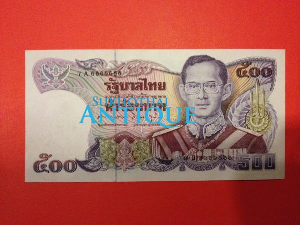 ธนบัตร แบบ13 ฉบับ 500 บาท ประกาศใช้ 16 กันยายน 2530 หมวด 7A/ธ 6666666 เลขตอง7ตัว สภาพ UNC หายากมาก