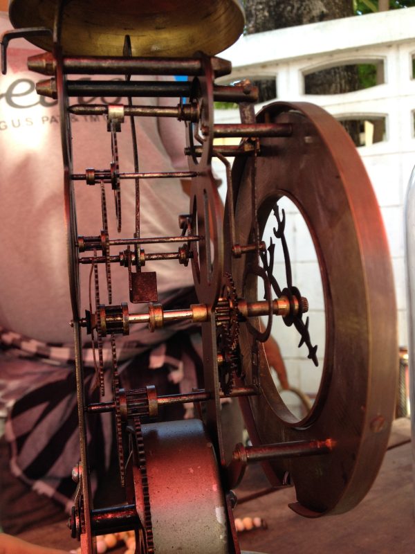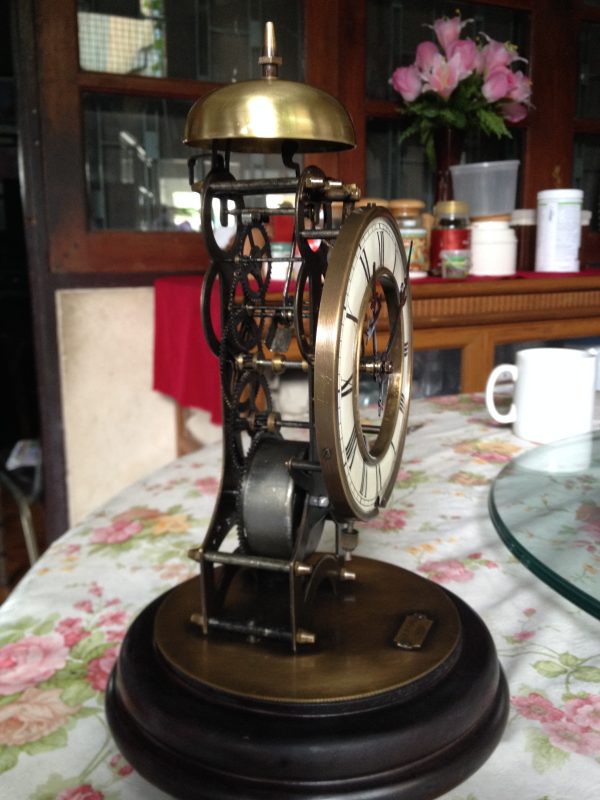 นาฬิกาไขลานตั้งโต๊ะหลุยโบราณ 5 เฟืองหน้าปัดกระเบื้องครอบแก้ว