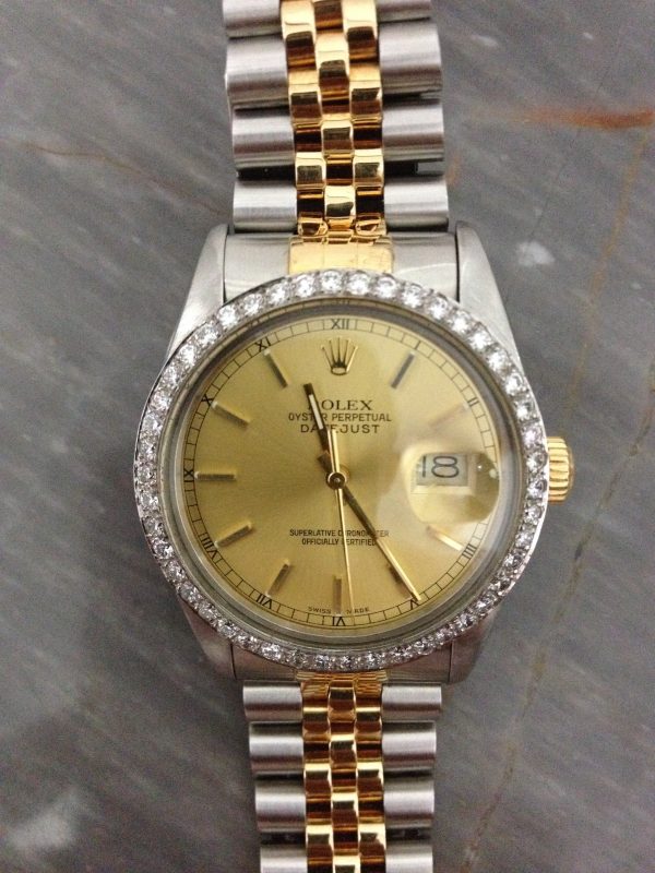 นาฬิกาRolex รุ่น Datejust 1603 สภาพเก็บเก่าแทบไม่ได้ใช้กรอบฝังเพชร สวยมากพร้อมกล่องไม้เดิมๆ
