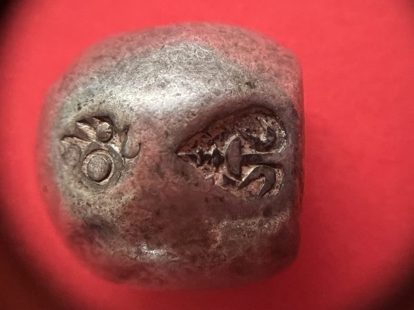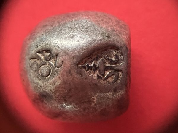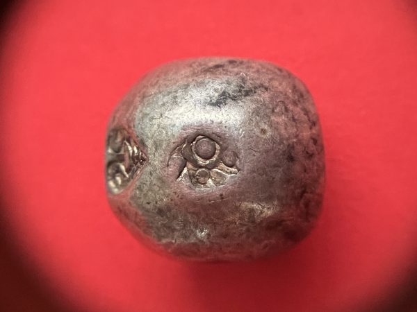 พดด้วงรัตนโกสินทร์เม็ดบาทสมัย ร. 4 พ.ศ.2394-2411 ( ตรามงกุฎ-กรงจักร ) เม็ดนี้พิเศษมี 3 ตรา (เม็ดที่ 2)