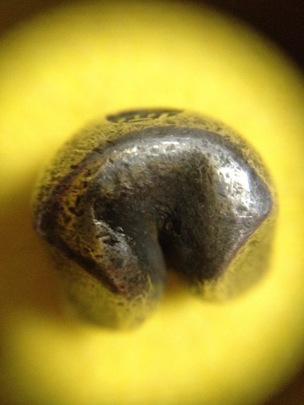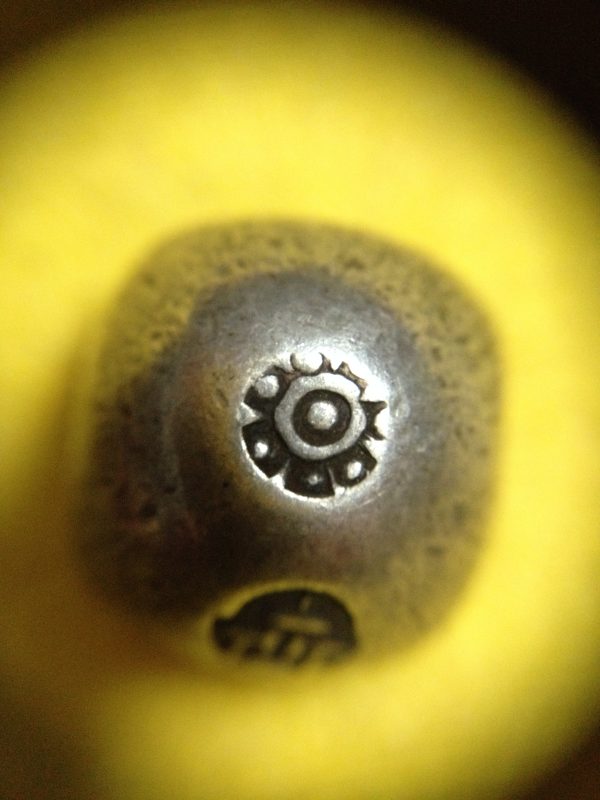 พดด้วงเม็ด 1 บาทสมัยพระเจ้าปราสาททองปี พ.ศ. 2173-2198 ตรา พุ่มข้าวบิณฑ์จอมปราสาท เป็นรูป 7 จุดอยู่ภายในกรอบ สวยคมชัดมากๆ (เม็ดที่ 2)