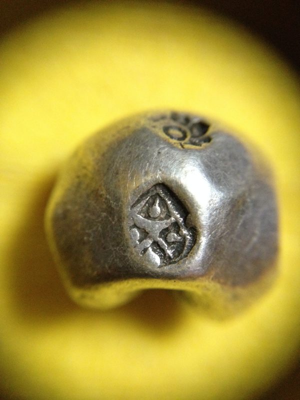 พดด้วงเม็ด 1 บาทสมัยพระเจ้าทรงธรรมปี พ.ศ. 2155-2171 ตรา เปลวเพลิง เป็นรูปคล้ายดวงไฟมีเปลวลอยสองข้าง สวยคมชัดเป็นแบบหายาก (เม็ดที่10)