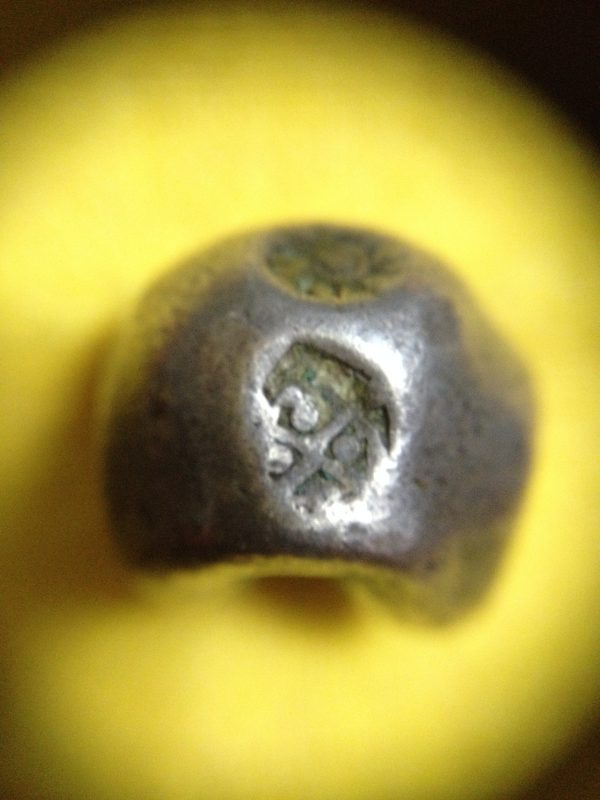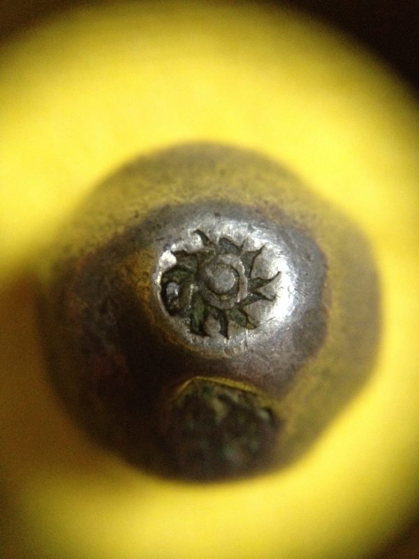 พดด้วงเม็ด 1 บาทสมัยพระเจ้าทรงธรรมปี พ.ศ. 2155-2171 ตรา เปลวเพลิง เป็นรูปคล้ายดวงไฟมีเปลวลอยสองข้าง สวยคมชัดมากๆหายากมากสภาพนี้ (เม็ดที่ 11)