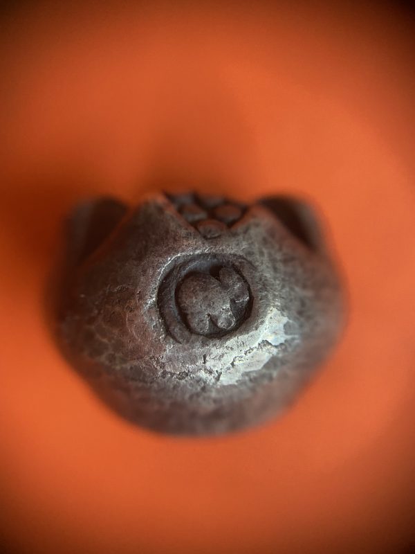 พดด้วงสุโขทัยเม็ด 1 บาทตราช้าง – ตราพุ่มหก บากขา 2 ข้าง ปลายขาข้างขวามีอตอกตราสังข์ เม็ดที่ 3